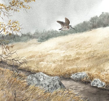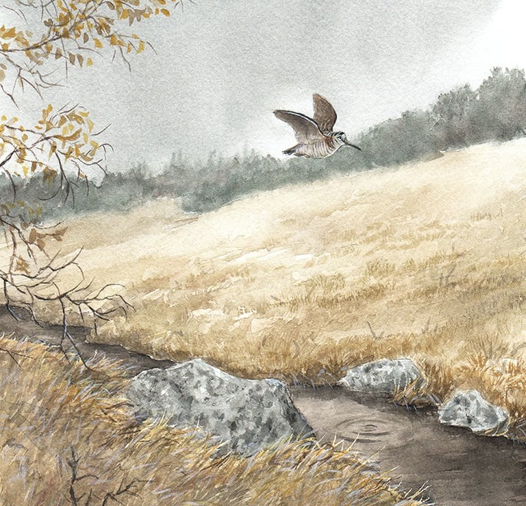 La bécasse et la truite / Aquarelle (non disponible)