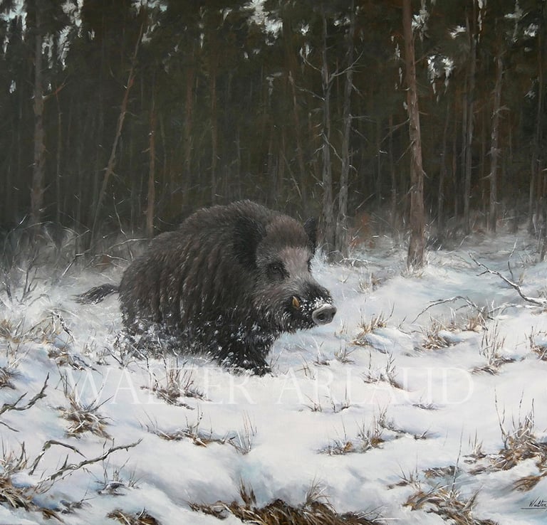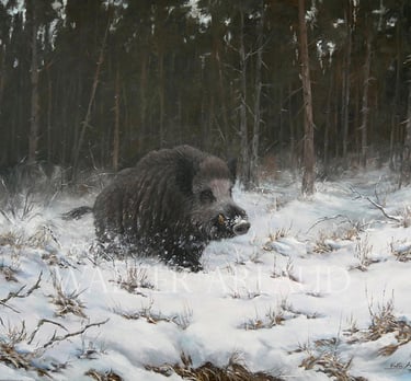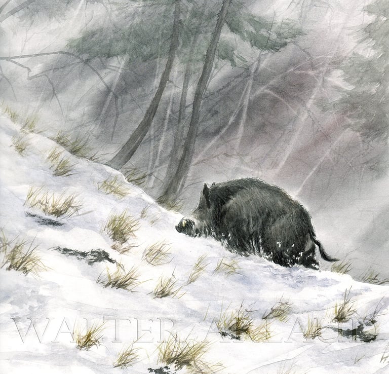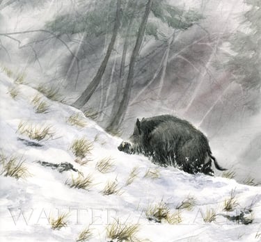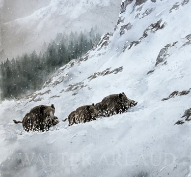 Sangliers dans le blizzard / Aquarelle (non disponible)