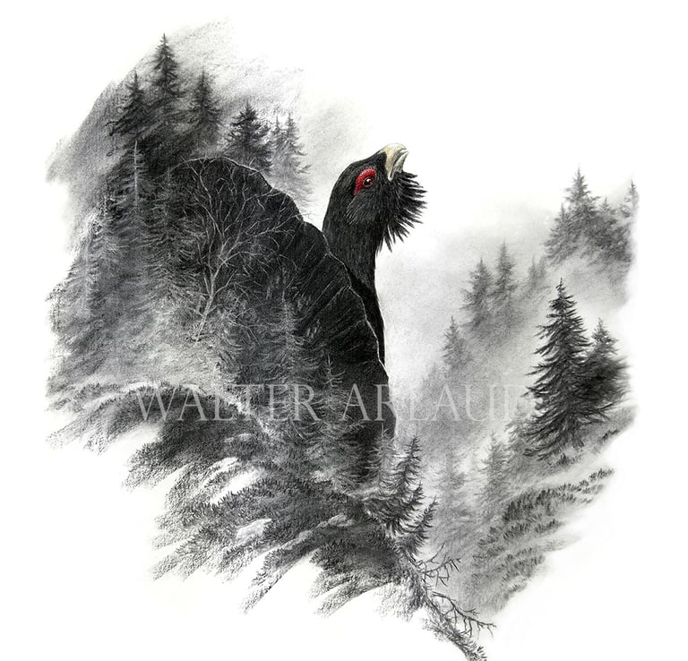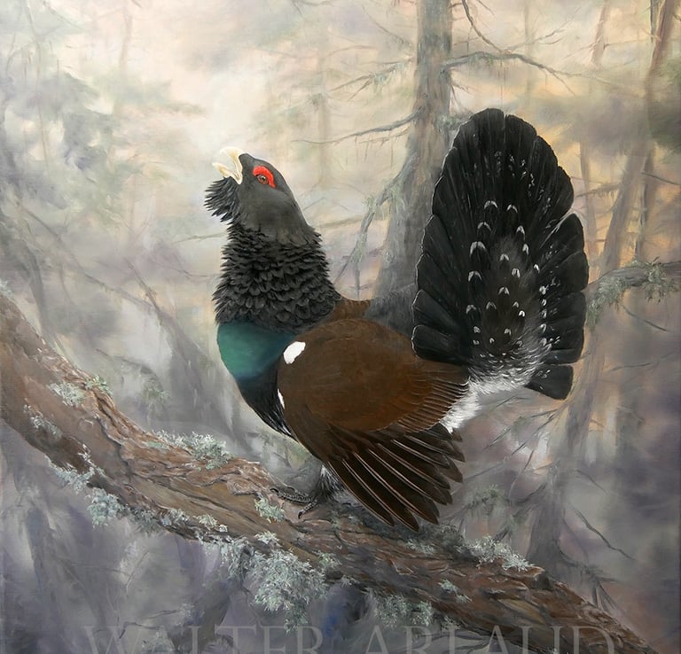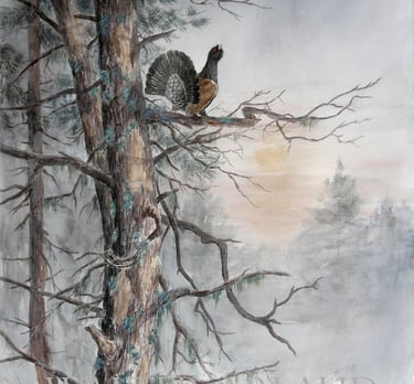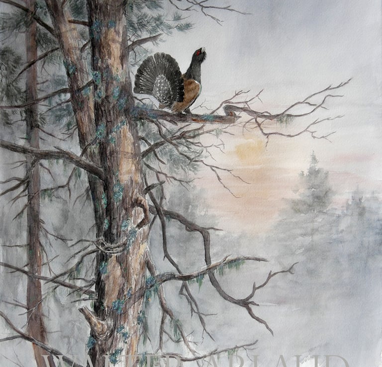 Grand tétras à l'aube / Aquarelle (non disponible)