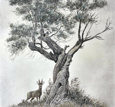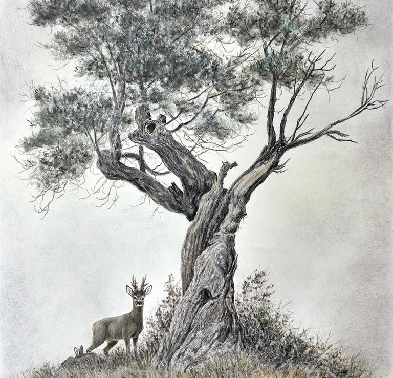 Le vieil arbre / Aquarelle - fusain (non disponible)
