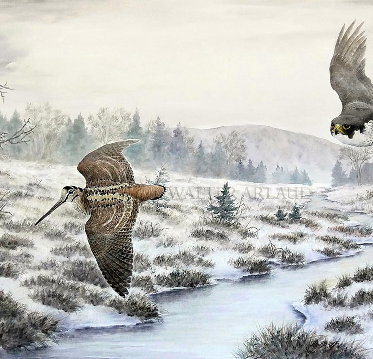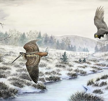 Faucon et Bécasse / Aquarelle (non disponible)