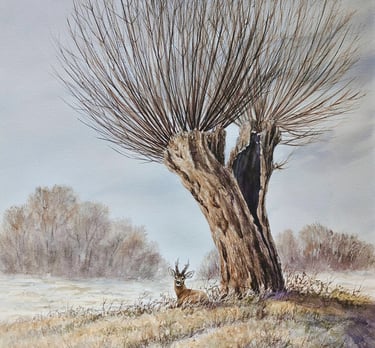 Sous le grand saule / Aquarelle (disponible)