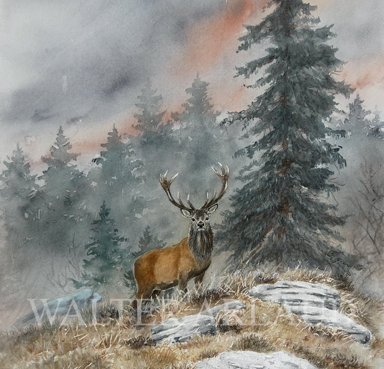 Cerf devant le bois / Aquarelle (non disponible)